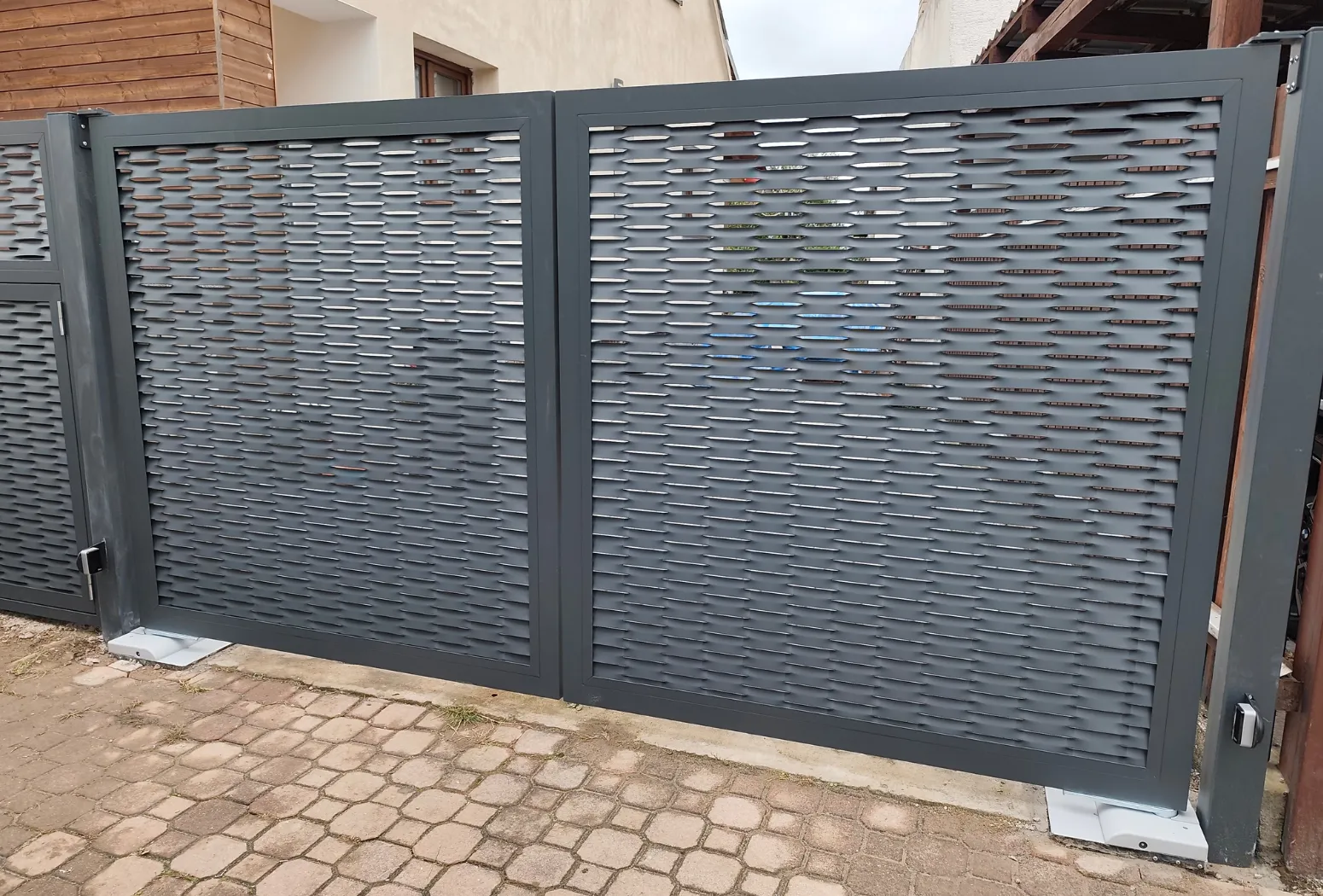 Dvoukřídlé otočné brány jsou klasickým a elegantním řešením pro vjezdy, kde je dostatek prostoru pro otevírání křídel.
