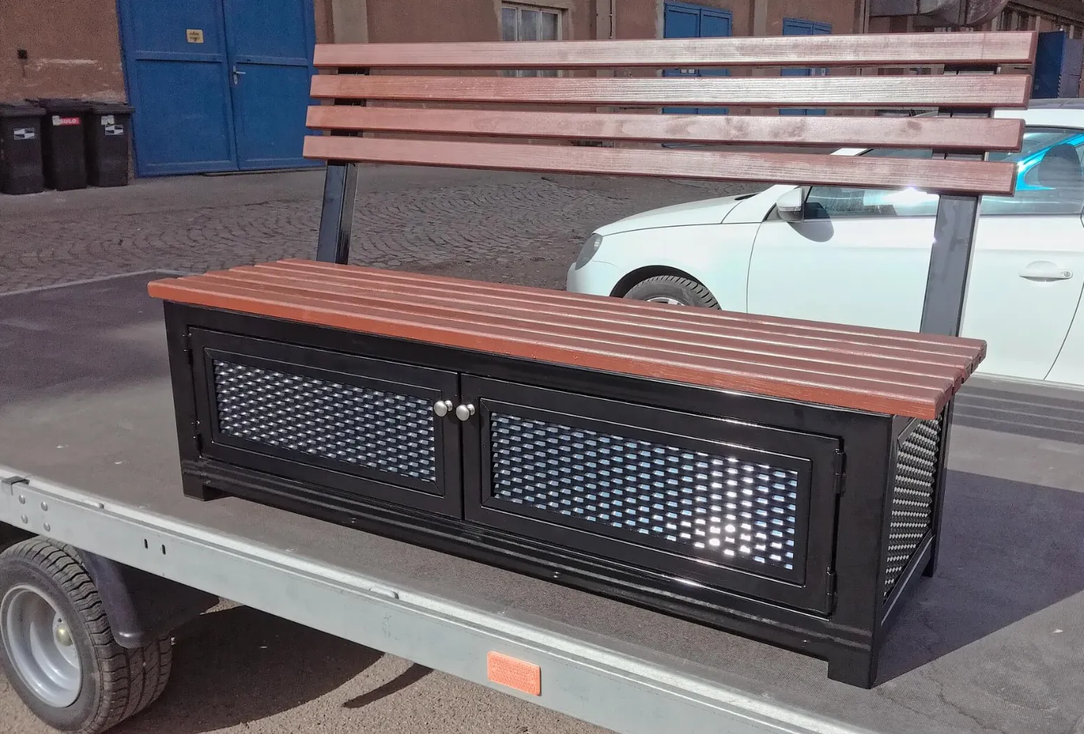 Lavičky a venkovní posezení vyrábíme z kovu v kombinaci s dřevem nebo kompozitními deskami, které odolají vlivům počasí.