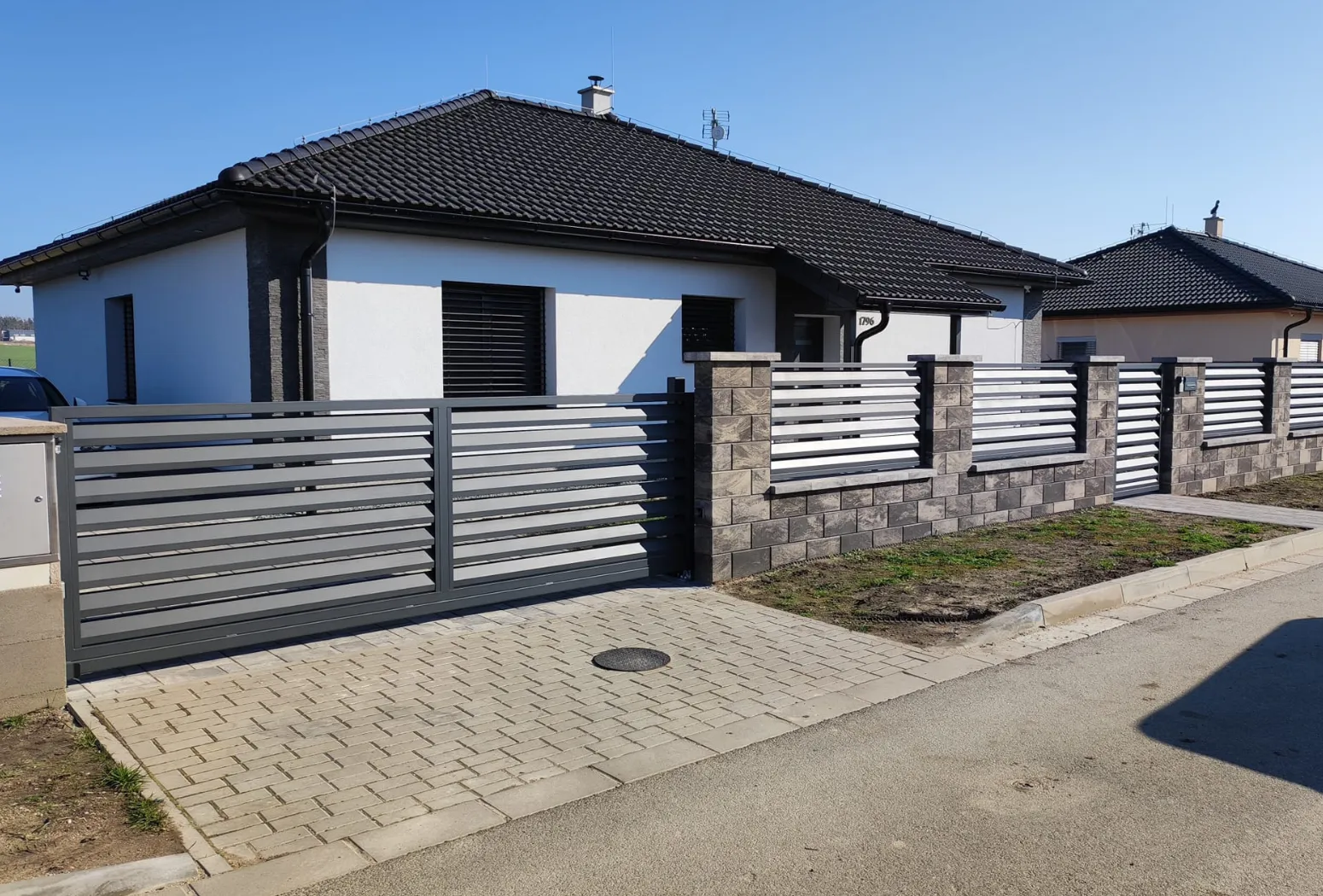 - Styl a materiál – hliníkové brány působí moderně, elegantně a bezúdržbově, ideálně doplňují současnou architekturu a ladí s plotovými dílci.